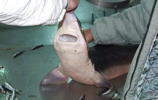 Türkeli Balıkçıları tarafından yakalanan 1,5 metre uzunluğunda köpek balığı tezgâhlarda ilgi görüyor.Hamsinin bol olduğu günlerde Türkeli Balıkçıları tarafından tezgâhları süsleyen köpek balığına ilgi büyük. Birçok vatandaş köpekbalığı ile fotoğraf çekiliyor.