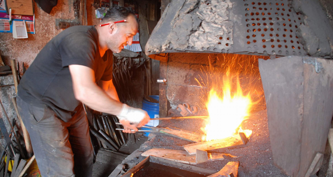 500 dereceye varan sıcakta ocağın başında çalışan demirci...