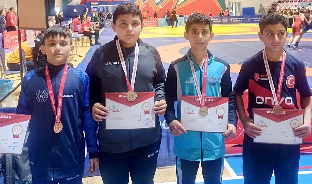 Muş'ta düzenlenen Okullar Arası Küçükler Güreş Grup Şampiyonası'nda mücadele eden Ağrılı sporcular, elde ettikleri derecelerle hem madalyaları topladı hem de Türkiye finalleri yolunda önemli bir başarıya imza attı.Nihat AYDIN / AĞRI (İGFA) - Muş'ta düzenlenen Okullar Arası Küçükler Güreş Grup Şampiyonası'nda turnuvayı 2 altın ve 2 bronz madalya ile tamamlayan Ağrılı sporcular, performanslarıyla dikkat çekti.Elde edilen bu sonuçlarla Ağrı, güreşte altyapı gücünü bir kez daha ortaya koydu.Şampiyonada dereceye giren; Resul Günay (34 kg) birinci, Abdullah Polat (68 kg) birinci, Aras Tanrıverdi (34 kg) üçüncü, Yusuf Demir (41 kg) ise üçüncü oldu.Antrenör Murat Bayram'ın sporcular üzerindeki emeğinin de öne çıktığı sonuçlarla Bolu'da düzenlenecek Türkiye Şampiyonası finallerine katılmaya hak kazanan sporcular, Ağrı'yı ulusal düzeyde temsil etmeye hak kazandı.