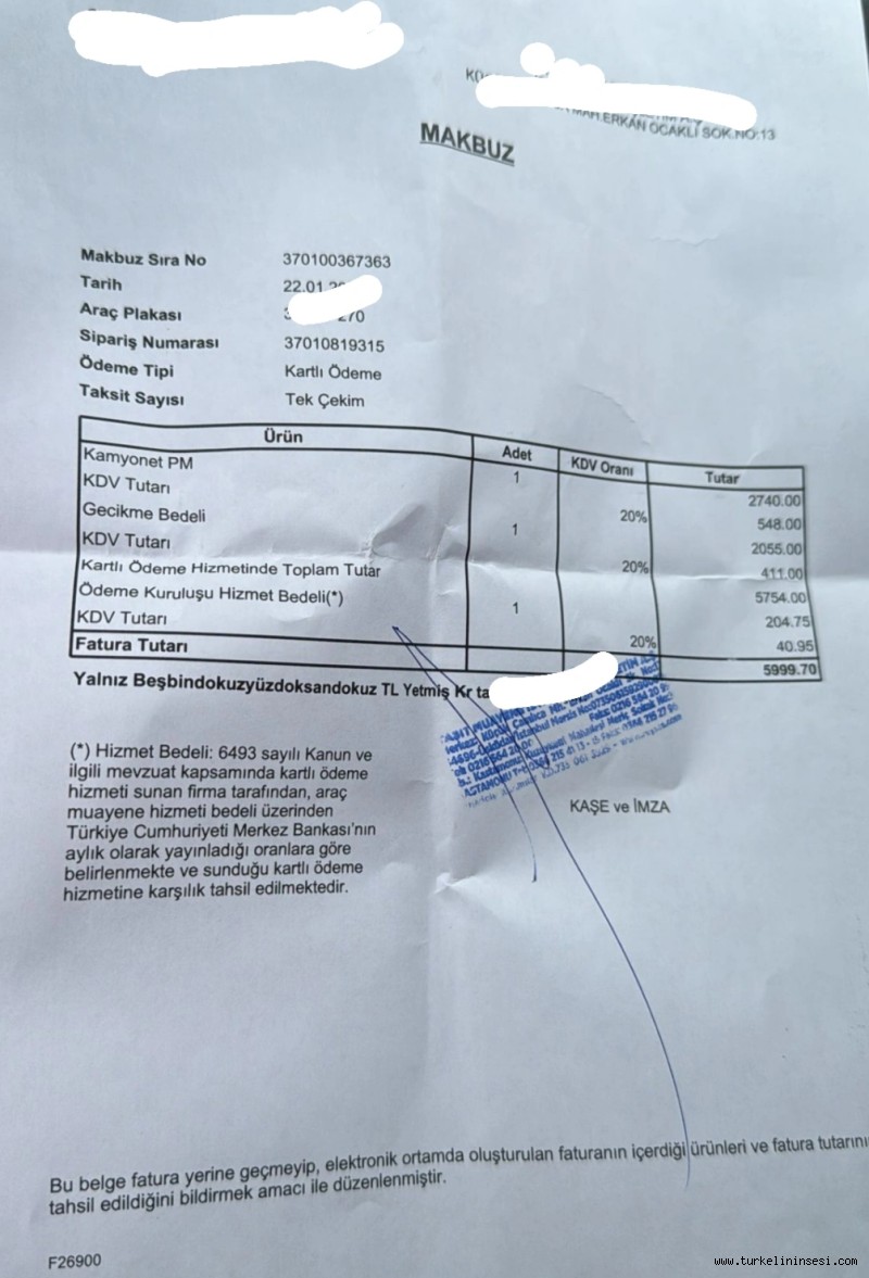 Türkeli'de, araç muayene süresini farkında olmadan geçiren bir vatandaş, karşılaştığı yüksek gecikme bedeli karşısında adeta şoke oldu.Normalde 3.500 TL (KDV dahil) olan araç muayene ücretine, sadece 2,5 ay gecikme nedeniyle 2.055 TL gecikme faizi eklendi. Böylece toplam artış yaklaşık %33 oldu.Vatandaş yaşadığı durumu şu sözlerle anlattı:“Aracımızın muayenesinin geçtiğini fark etmedik. Üzerinden sadece iki ay geçmişti. Ancak gittiğimizde, muayene ücretine 2.055 TL faiz eklendiğini öğrendik. Eskiden bu gecikme bedelleri yüzde 3-5 civarındaydı, yıllık da yüzde 10’u geçmezdi. Şimdi ise çok daha yüksek. Bu devasa artış karşısında şaşkınlık yaşadım.”Yaşanan bu durumun ardından vatandaş, aynı mağduriyeti başkalarının yaşamaması için herkesi uyararak, araç sahiplerinin muayene tarihlerini mutlaka kontrol etmeleri gerektiğini söyledi.