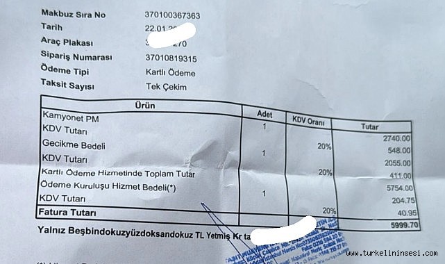 Türkeli'de bir vatandaş, karşılaştığı yüksek gecikme bedeli karşısında adeta şoke oldu.