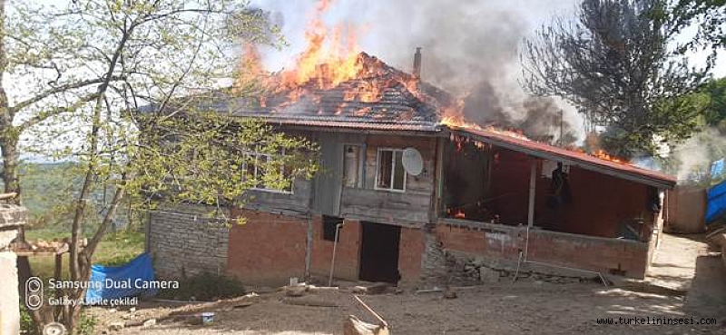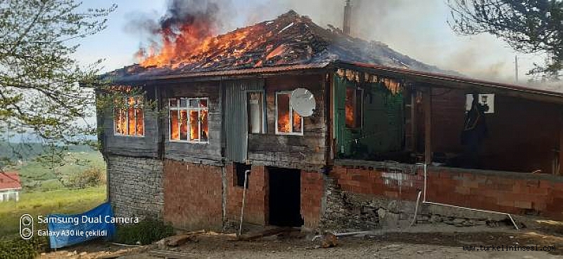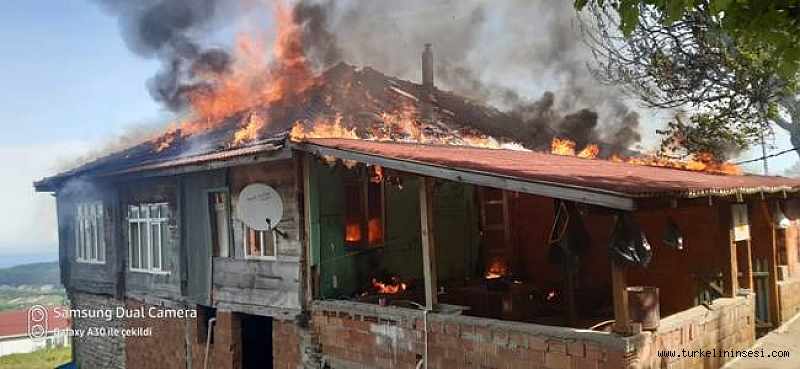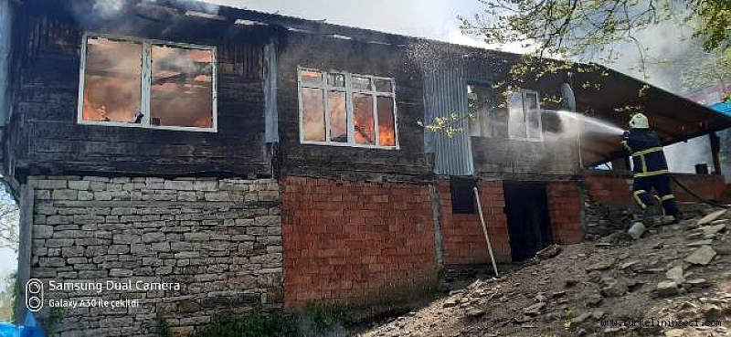 Ayancık'ta iki katlı ahşap ev küle döndü