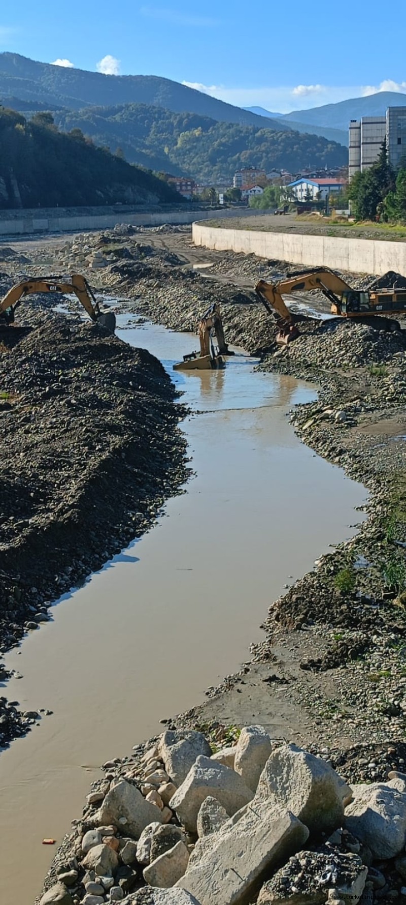 Ayancık ilçesinde yapılan dere ıslah çalışması sırasında bir iş makinesi suya gömüldü.