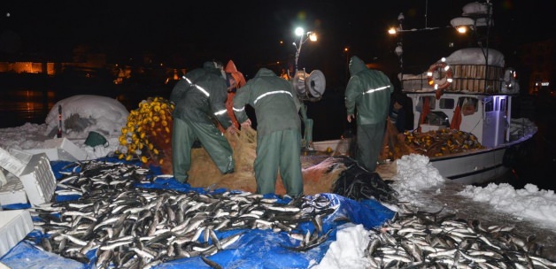 Sinop'ta etkili olan kar ve fırtına nedeniyle bir süredir denize açılamayan ve avlanamayan balıkçılar, bugün erken saatlerde açıldıkları Karadeniz'den bol miktarda hamsi ile limana döndü.Sinop'ta etkili olan kar ve fırtına nedeniyle bir süredir denize açılamayan balıkçılar, bugün açıldıkları Karadeniz'de bol miktarda hamsi avladı.Avladıkları 500 kasa hamsi ile teknesiyle Sinop Limanı'na yanaşan Namık Ünlü, AA muhabirine yaptığı açıklamada, hamsinin doğuya göçü nedeniyle umutlarını kestikleri bir anda tekrar hamsi sürüleri ile karşılaşmalarının yüzlerini güldürdüğünü söyledi.Fırtına ve kar nedeniyle balıkçıların yaklaşık bir haftadır denize açılamadıklarını belirten Ünlü, "Balıkçılarımız olumsuz hava şartları yüzünden denize çıkamıyorlardı. Bugün denize açıldılar ve ağları hamsi ile doldu. Hamsiden umudunu kesen balıkçılarımızın yüzü, yeni hamsi akını ile güldü" ifadesini kullandı.Hamsi sezonunun kısa süre de olsa balıkçılar için iyi geçtiğini vurgulayan Ünlü, kötü hava şartlarının işlerini aksattığını dile getirdi. Ünlü, "Bu sene balıkçılık, geçen seneye nazaran fena değildi, hamsi boldu. Hamsi erken başladı, şu sıralar Doğu Karadeniz'i terk ederek Gürcistan Abhazya sahillerine gitti. Bugün avladığımız hamsi, 'kaçak' tabir ettiğimiz kar yağışı ile açıktan sahile gelen hamsidir. Bundan sonra denizde istavrit ve diğer balıklardan nasibimizi arayacağız."Hamsinin bir bölümü kentteki balıkçı tezgahlarında kilogramı 7,5 liradan satılırken, büyük bölümü kamyonlarla çevre illere gönderildi.Haber7.com