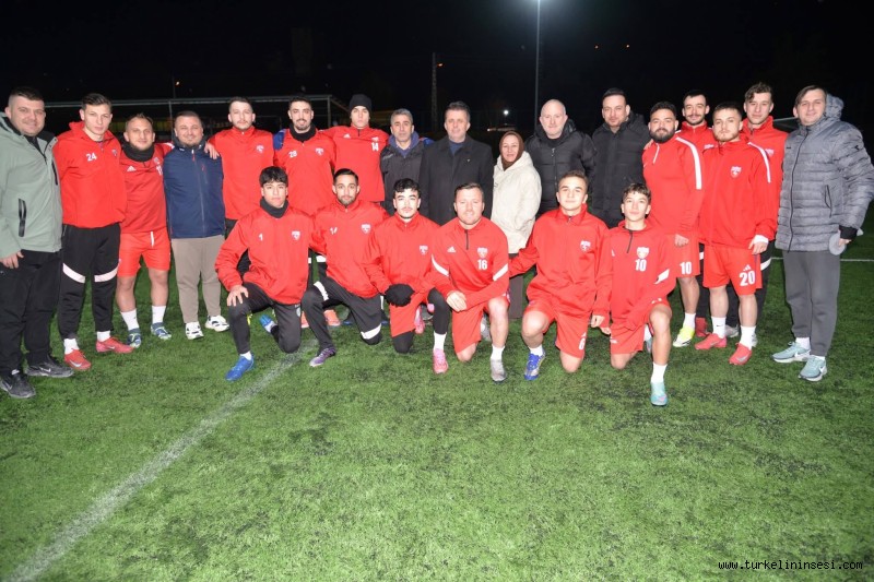 Türkeli Belediye Başkanı Veysel Şahin ile eşi Nevin Şahin hanımefendi, Belediye Meclis Üyesi Gökhan Gün ile birlikte Sinop Büyükler 1. Amatör Futbol Ligi’nde mücadele eden Türkeli Belediye Esnafspor’u, Türkeli Huzur Dincel Stadı’ndaki antrenman öncesinde ziyaret etti.Ziyarette Kulüp Başkanı Orhan Köksal, teknik heyet ve futbolcularla bir araya gelen Başkan Şahin, tatlı ikramında bulunarak takıma başarılar diledi.Spora ve sporcuya verdiği destekle her zaman takımların ve sporcuların yanında olan Belediye Başkanı Veysel Şahin, gençlerin sporla iç içe olmasını önemsediklerini ifade etti.Başkan Şahin, hafta sonu Ayancıkspor ile oynanacak karşılaşma öncesinde yaptığı değerlendirmede, “Takımımıza gönülden inanıyoruz. Pazar günü sahaya çıkacak olan tüm futbolcu kardeşlerime başarılar diliyorum.” ifadelerini kullandı.