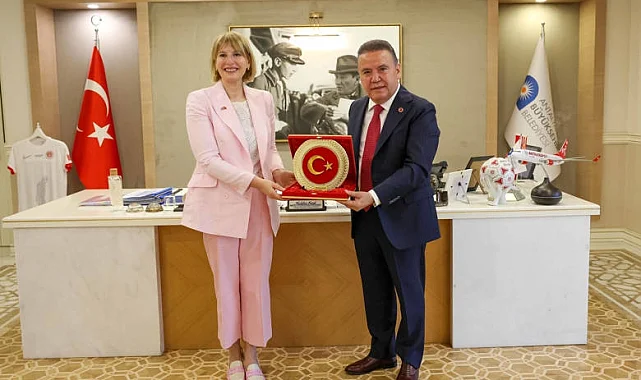 Birleşik Krallık Türkiye Büyükelçisi Jill Morris ve beraberindeki heyet, Antalya Büyükşehir Belediye Başkanı Muhittin Böcek'i ziyaret etti.ANTALYA (İGFA) - Ziyarette ağırlıklı olarak tarım ve turizm konuları ele alındı. Büyükelçi Morris, sürdürülebilirlik ve çevre konusunun İngiltere'nin de önem verdiği konuların başında geldiğini belirterek, Antalya Büyükşehir Belediyesi'nin yaptığı çalışmaların turizmi canlandıracak ve turist sayısını arttıracak önemli faktörler olduğunu söyledi.Antalya Büyükşehir Belediye Başkanı Muhittin Böcek, Birleşik Krallık Türkiye Büyükelçisi Jill Morris ve beraberindeki heyeti ağırladı. Ziyaretten duyduğu memnuniyeti dile getiren Başkan Muhittin Böcek, turizm sezonunun yaklaşmasıyla birlikte, Antalya'nın İngiltere ile olan ticaret, turizm ve kültürel bağlarını daha da güçlendirmek adına görüşmenin önem taşıdığını söyledi. Antalya'nın tarım ve turizm potansiyeli hakkında heyete bilgi veren Başkan Böcek, Antalya Büyükşehir Belediyesi'nin yerelden kalkınma ve çevre konusunda yaptığı çalışmaları anlattı.BAŞKAN MUHİTTİN BÖCEK ÇALIŞMALARI ANLATTIAntalya'nın geçtiğimiz yıl 1 milyon 574 bin İngiliz turiste ev sahipliği yaptığını söyleyen Başkan Muhittin Böcek, "Antalya'mız doğası, tarihi ile 640 km sahili olan, 700 bin yatak kapasiteli bir şehir. Turist sayısı bakımından dünyada dördüncü, Avrupa'da 3. sıradayız. Asya Belediye Başkanları Forumu tarafından 2025 yılı çevre başkenti ilan edildik. Turizmin yanında tarım var. Uluslararası FoodFest gastronomi Festivalimiz var. Dünyadan ve Türkiye'den Michelin yıldızlı şeflerimiz geliyor. Kültür, sanat, spor ve sağlık turizmi alanında da turizmi 12 aya yaymaya çalışıyoruz. Antalya'mız tüm dünya liderlerinin de geldiği bir barış şehridir" dedi. Aynı zamanda Sakin Şehirler Ağı (Cittaslow) Genel Başkan Yardımcısı olan Başkan Muhittin Böcek, Büyükelçi Morris'e turizm için büyük önem taşıyan sakin şehir çalışmaları hakkında da bilgi verdi.TÜRKİYE'YE ÖRNEK OLUYORUZ30 Büyükşehir Belediyesi arasında Antalya Büyükşehir Belediyesi'nin yerelden kalkınma ve tarım projeleri ile ilk sırada olduğunu söyleyen Başkan Muhittin Böcek, tarım alanında yapılan çalışmaları da anlattı. Başkan Böcek, "Türkiye'de işlem hacmiyle ilgili 3 yıldır birinci sıradayız. 1938 tüccar ve komisyoncumuz var. Üreticiler ile ilgili Kumluca'da hem paketleme hem kurutma tesisimizi açtık. Korkuteli'de de açtık. Burada kurutulan ve paketlenen ülkelerin yurt dışına satışıyla ilgili hazırlıklarımız var. Büyükşehir Belediyesi olarak kadın kooperatiflerimizi destekliyoruz. 53 sulama kooperatifimizin enerji ihtiyacının yüzde 85'ini karşılıyoruz. 145 bin konuta eşdeğer 53,5 MW temiz enerji üretiyoruz. Üreticilere her türlü fide, fidan, tohum, ekipman desteği sağlıyoruz. Budama ve arıcılık eğitimleri veriyoruz. Kapalı devre sulama sistemleri kurarak suyumuzu koruyoruz. Tüm bu çalışmalarımızla Türkiye'ye örnek oluyoruz" diye konuştu.İNGİLİZ TURİSTLER ANTALYA'YI ÇOK SEVİYORBirleşik Krallık Büyükelçisi Jill Morris de Antalya'da olmaktan büyük mutluluk duyduğunu belirterek, İngiliz turistlerin Antalya'yı çok sevdiğini ve her yıl giderek sayılarının arttığını söyledi. Sıcak karşılamasından dolayı Başkan Muhittin Böcek'e teşekkür eden Büyükelçi Morris şöyle konuştu: "İngiliz turistler geldiklerinde kendilerini güvende ve evlerinde hissetsinler diye çok güzel çalışmalarınız var. İngiliz takımları eğitim ve kamp amaçlı burayı sıklıkla tercih ediyor. Tarım teknolojileri, özellikle sürdürülebilirlik ve yeşil çevre konusu aynı zamanda İngiltere'nin de önem verdiği konuların başında geliyor. Çevreyi korumanın yanı sıra, doğa turizmi, eko turizm, gastronomi turizmi de turistlerin çok ilgisini çeken konular. Sizin sunduğunuz bu çeşitlilik de turizmi çok daha fazla artıracak bir faktör."Görüşmenin sonunda Başkan Muhittin Böcek ziyaretin anısına Birleşik Krallık Büyükelçisi Jill Morris'e ay yıldızlı plaket ve kadın kooperatifleri tarafından yapılan hediyeleri takdim etti.