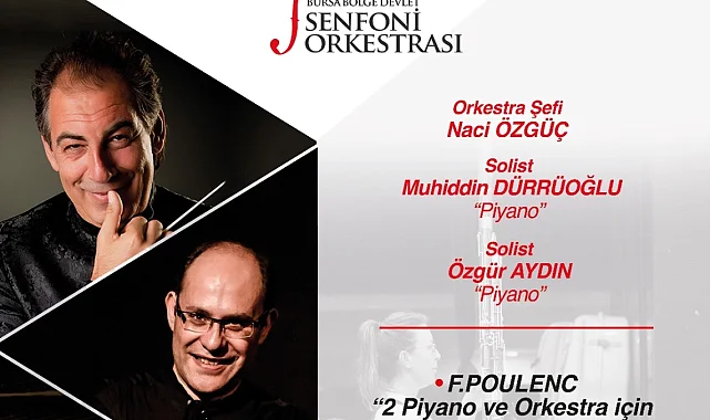 Bursa Bölge Devlet Senfoni Orkestrası (BBDSO), bu haftaki konser programında, müzik severleri etkileyici bir deneyime çağırdı. Programda, Poulenc'in İki Piyano için Konçertosu ve Rachmaninov'un 2. Senfonisi yer alacak.BURSA (İGFA) - BDDSO, bu haftaki konserinde solistleri, uluslararası alanda tanınan piyanistler Muhiddin Dürrüoğlu ve Özgür Aydın. Besteci ve piyanist kimliğiyle birçok uluslararası ödüle sahip olan Muhiddin Dürrüoğlu, üstün yeteneğiyle dinleyicilere eşsiz bir performans sunmaya hazırlanıyor.Avrupa'nın en prestijli konser salonlarında sahne alan Özgür Aydın ise dinamik ve zarif yorumuyla dikkat çekiyor.Orkestrayı, deneyimli şef Naci Özgüç yönetecek.Hem yurtiçinde hem de yurtdışında önemli orkestraları yönetmiş olan Özgüç, zengin birikimi ve güçlü sahne enerjisiyle dinleyicilere unutulmaz bir müzik deneyimi vaat ediyor.