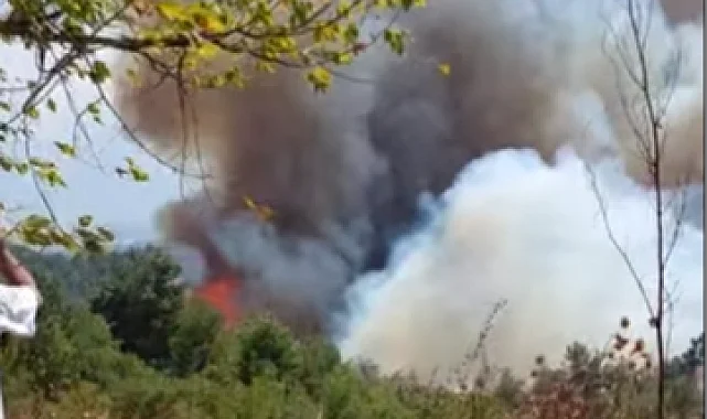 Bursa'nın Gündoğdu Tepesi yakınındaki ormanlık alanda çıkan yangına, havadan ve karadan müdahale sürüyor. İki helikopter ve itfaiye ekipleri alevleri kontrol altına almaya çalışıyor.BURSA (İGFA) - Bursa'da, radyo ve televizyon vericilerinin bulunduğu Gündoğdu Tepesi'nin yakınındaki ormanlık alanda yangın çıktı.Alınan bilgiye göre saat 14.00 sıralarında başlayan ve rüzgarın etkisiyle hızla yayılan yangın, Gündoğdu Mahallesi sakinlerinin ihbarıyla fark edildi.Orman Bölge Müdürlüğü ve itfaiye ekipleri, arazöz ve itfaiye araçlarıyla karadan müdahale ederken, iki helikopterle havadan destek sağlanıyor.Yangının kontrol altına alınması için çalışmalar yoğun bir şekilde sürüyor.