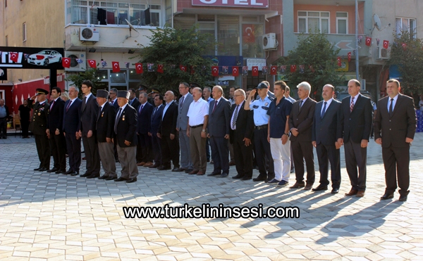 Cumhuriyet Meydanı'nda düzenlenen törene, İlçe Kaymakamı Semih Altaş, İlçe Garnizon Komutanı Serdar Poyraz, Belediye Başkanı Halil Dilek Özcan, daire amirleri, siyasi parti temsilcileri ve vatandaşlar katıldı.Atatürk büstüne Kaymakamlık, Garnizon Komutanlığı ve Belediye Başkanlığı çelenginin sunulmasının ardından günün anlam ve önemini belirten konuşmayı, Uzm. J. II Kad. Çvş. Şerafettin Erişgin yaptı.Erişgin yaptığı konuşmada, "Bugün milletimiz ve onun bağrından çıkan kahraman Silahlı Kuvvetleri'nin tarihe altın harflerle adını yazdığı onurlu bir günün yıldönümünü kutlamanın mutluluğunu yaşıyoruz. Ulusumuzun güven ve gurur kaynağı kahraman Türk Ordusu, hak ettiği bu kutsala layık olduğunu, gerektiğinde en mükemmel şekilde göstererek ve büyük zaferin meşalesini sonsuza kadar şan ve şerefle taşıyacaktır.Ulusumuz, vatanına ve bağımsızlığına yöneltilen saldırıları her zaman geri çevirmiş, en ahlaksız durumlarda dahi büyük zaferler kazanarak, özgür ve bağımsız yaşama kararlılığını her daim sürdürmüştür. Türk milletinin Atatürk önderliğinde verdiği bağımsızlık mücadelesi, tarihte eşine az rastlanan bir kahramanlık destanıdır." diye konuştu.Törenin ardından kaymakamlık makamında tebrikler kabul edildi.