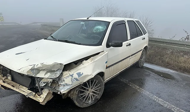 Düzce'de yaşanan yoğun sis ulaşımı ve hayatı olumsuz etkiliyor.Sefer DEMİR / DÜZCE (İGFA) - Kent merkezinden Anadolu otoyolu Düzce gişeleri istikametine giden E.Y. İdaresindeki 81 ACB 056 plakalı otomobil yer yer 15 metre olan yoğun sis nedeyle görüşünü kaybedip kavşakta bariyerlere çarpıp kaza yaptı.Çarpmanın etkisiyle E.Y. Yaralandı. Diğer sürücülerin ihbarı üzerine bölgeye sağlık ve jandarma ekipleri sevk edildi. E.Y. Olay yerinde yapılan ilk müdahalenin ardından ambulans ile Düzce Atatürk Devlet Hastanesine kaldırıldı. Kaza nedeniyle tek şeritten verilen trafik akışı otomobilin kaldırılmasının ardından normal seyrine döndü.