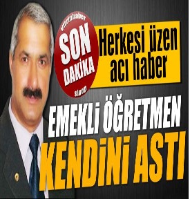 Gerze ilçesinde kanser hastası olduğu öğrenilen 60 yaşındaki emekli öğretmen kendini asarak intihar etti. Üzücü olay 15:20 sıralarında ilçe merkezi Çarşı Mahallesi'nde bulunan Zenginler Sitesindeki bir apartman dairesinde meydana geldi.Edinilen bilgiye göre; bir süredir kanser tedavisi gördüğü ve ileri derecede diyaliz hastası olduğu öğrenilen Nihat Öztürk (60) oturduğu dairede kendini asarak canına son verdi. Öztürk'ün cenazesi savcının yaptığı inceleme ardından Gerze Devlet Hastanesi morguna kaldırıldı. Nihat Öztürk'ün ölümü ilçede büyük üzüntüye neden oldu.Olayla ilgili başlatılan soruşturma sürüyor. Sinop Vitrin Haber