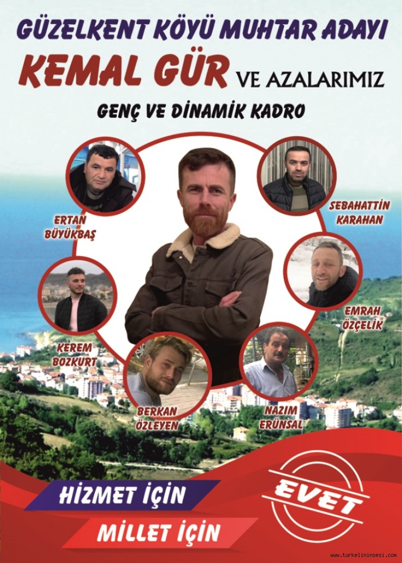 Türkeli'nin Güzelkent köyünden Muhtar Adayı olan Kemal Gür, yaptığı açıklamada, 31 Mart 2024 Mahalli İdareler Yerel Seçimleri'nde halkın teveccühleriyle seçildikleri takdirde genç ve dinamik kadrodan oluşan aza heyeti ile birlikte birçok hizmetleri Güzelkent'e kazandırmak istediğini aktardı.Muhtar Adayı Kemal Gür, vaatlerini şu şekilde sıraladı:"Köyümüzün deforme olmuş tüm yol ve kaldırım parke taşlarının yaz ayı gelmeden bakımı ve boyanması.Sahil ve liman yolumuzun ışıklandırılarak, 12 ay düzenli bir şekilde temizliği sağlanıp, her bir noktasına çöp konteynerleri konulması.Yaz aylarında sıkça rastlanan sinek istilasına karşı haftada 3 veya 4 kez ilaçlama yapılarak bu soruna son vereceğiz.Senelerdir halkımızın sıkıntı çektiği pazaryerini yeniden yapılandırıp, yerli üretime teşvik vermek amacıyla kapalı satış yerleri inşa edeceğiz.Köyümüzü sel, afet ve su taşkınlarından korumak amacıyla Yukarı Helaldı Mahallesi'nden başlanarak, köy merkezine kadar şarampoller, su mazgalları yeniden düzenlenecek.Mesire Alanları oluşturulması.Piknik ve Yürüyüş Alanları oluşturulması.Köyümüzün yolları baştan sona senede en az 2 veya 3 kez yıkanması.Tüm oyun parklarındaki oyun gruplarının bakımı ve onarımı ile bu alanların temizliğinin sağlanması.Köyümüzün önemli sorunlarından biri haline gelen başıboş sokak hayvanları için yetkili makamlarca görüşerek, sorunun çözümünü sağlayacağız.Cadde ve sokaklarımızda yetersiz kalan sokak aydınlatmalarının sayısının artırılması ve bakıma ihtiyaç duyulanların onarımının sağlanması için yetkililerle iletişime geçilmesi.İhtiyaç sahiplerine ulaştırılmak üzere muhtelif noktalara giysi kumbarası konulması.Köyümüzün güvenliğini sağlamak amacıyla muhtelif noktalara ve oyun parklarına güvenlik kameraların konulması.Köyümüzün cadde ve sokaklarına küçük hacimli çöp kutuları konulması.Köyümüz gençleri için spor salonu ve bilardo salonu kazandırılacak.Köyümüz yollarındaki mevcut asfaltların yenilenmesi.Köyümüzde bulunan camilerin ihtiyaçlarının giderilmesi.Köyümüz girişindeki kavşağın karayollarıyla iletişime geçip yeniden daha güzel bir şekilde yenilenmesi.Mevcut Muhtarın doğalgaz projesinin devamı, doğalgaz geldikten sonra parkelerin onarılması.Köyümüzde yapılacaklar ve durum değerlendirmesi hakkında aza heyetimizle birlikte düzenli olarak halkın bilgilendirilmesi." şeklinde açıkladı.Kemal Gür, Güzelkent köyü sakinlerine seslenerek, "Güzelkent köyümüzün güzel insanları. Daha çok vaatlerimiz var ama yapabileceklerimizin vaadini vermek, yalan konuşup yapamayacaklarımızın sözünü vermemek için sizlere kesinlikle ulaştıracağımız hizmetlerimizi sıraladık. Bizim projemizde tatlı dil, güler yüz, bizim projemizde gönüllere girmek, bizim projemizde doğruyu konuşup, bitecek bir işi bitirmek var.Bu nedenden dolayı da muhtarlık bütçesini bilmediğimiz, ne kadar gelir-giderini bilmediğimiz için ilk etapta genç, dinamik, ısrarlı, girişken, yıllardır gerek belediyede, gerekse esnaf olarak köyüne hizmet vermiş bilinçli usta kadromuz ile sizin desteklerinizle hayata ve Güzelkent köyümüze kazandıracaklarımız hizmetler için adayız. Güzelkent'imizi, hepimizin hayal ettiği bir köy haline getirebilmek için canla başla çalışıp, siz değerli halkımızın desteğiyle eğer siz de uygun görürseniz, 31 Mart sonrası siz değerli halkımıza hizmet vermek için Allah'ın izniyle kazandıracağız." ifadelerini kullandı.