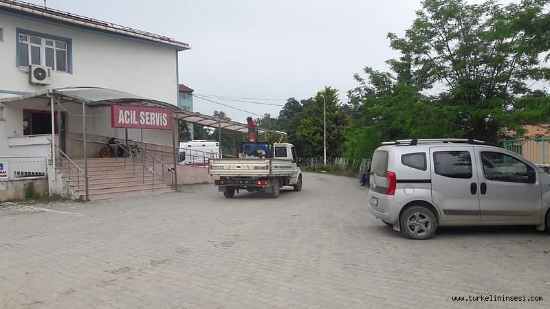 Türkeli'de yaşanan kuvvetli yağışların ardından cadde ve sokaklarda ilaçlama uygulaması yapıldı.