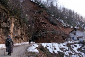 Alınan bilgiye göre, Keşlik, Dursun, Ulu, Işığan ve Kirazsökü köylerine ulaşımı sağlayan keşlik grup yolu dün akşam saatlerinde Bayramgazi köyü Yardere mahallesi 9. km’de oluşan heyelan nedeni ile ulaşıma kapandı. Heyelanın olduğu Yardere mahallesindeki Salim Maraz ve Mehmet Maraz’a ait evler de boşaltıldı. Oluşan heyelanın evlerinin üzerine geldiğini belirten Salim Maraz, “heyelan devam ediyor. Zaman zaman kısa parçalar koparak yuvarlanıyor. Yuvarlanan taş ve kaya parçaları evimize kadar ulaştı bizde evlerimizi boşalttık” dedi. Heyelanın erimekte olan kar kütleleri yüzüne oluştuğunu belirten Maraz, “heyelanı Kaymakamlık ve İl Özel idaresine bildirdik heyelan ile ilgilenmek üzere jeoloji mühendisi ve ekipleri göndereceklerini söylediler” dedi.
