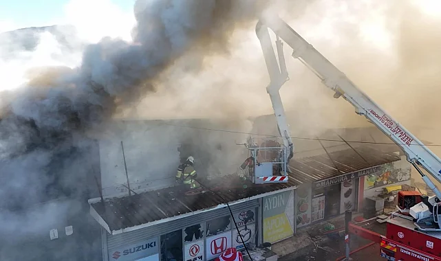 İzmir'in Buca ilçesindeki 6. Sanayi Sitesi'nde bir otomobil yedek parça dükkânında yangın çıktı. Kısa sürede büyüyen alevler, bitişikte bulunan iki iş yerine daha sıçradı. Olay yerine sevk edilen İzmir Büyükşehir Belediyesi İtfaiye Dairesi Başkanlığı ekipleri, 14 araç ve 70 personelle müdahale etti. Yangın, yaklaşık iki saat süren çalışmaların ardından kontrol altına alındı.İZMİR (İGFA) - İzmir'in Buca ilçesine bağlı İnönü Mahallesi 6. Sanayi Sitesi'nde bulunan bir otomobil yedek parça dükkanında saat 11.30 sıralarında yangın çıktı.İş yerinden yükselen yoğun duman ve alevleri fark eden çevredekiler, durumu vakit kaybetmeden 112 Acil Çağrı Merkezi'ne bildirdi. İhbar üzerine İzmir Büyükşehir Belediyesi İtfaiye Dairesi Başkanlığı ekipleri bölgeye sevk edildi. 14 araç ve 70 personelle olay yerine ulaşan ekipler, yangına hızla müdahale etti.Henüz çıkış nedeni belirlenemeyen yangın, iş yerinde bulunan yanıcı malzemelerin de etkisiyle büyüyerek bitişik nizamda bulunan iki dükkana daha sıçradı. Sanayi sitesinde paniğe yol açan yangın sırasında zaman zaman patlama sesleri duyuldu.Ekiplerin yoğun ve koordineli çalışması sonucu yangın, yaklaşık iki saat süren müdahalenin ardından kontrol altına alındı. Bölgede soğutma çalışmaları sürerken iş yerlerinde büyük çapta maddi hasar oluştu. Yangında can kaybı ya da yaralanma yaşanmadı.