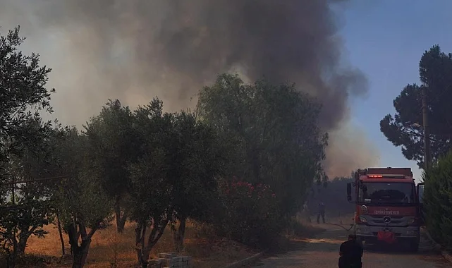 İzmir Büyükşehir Belediyesi İtfaiye ekipleri Çeşme ilçesi Ildır Mahallesi'nde otluk alanda çıkan yangının yerleşim yerlerine ulaşmaması için seferber oldu.İZMİR (İGFA) - İzmir Çeşme ilçesi Ildır Mahallesi'nde saat 14.00'te otluk alanda çıkan yangına İzmir İtfaiyesi ve Orman Bölge Müdürlüğü ekiplerinin müdahalesi sürüyor. 7 itfaiye aracı ve 40 personel ile sahada çalışan İzmir İtfaiyesi yangının yerleşim yerlerine ulaşmasını önlemek için çalışıyor.Orman Bölge Müdürlüğü de 2 helikopter, 4 uçak ile yangına havadan müdahale ediyor. Çeşme Belediyesi birimleri, İlçe Jandarma Komutanlığı ile İzmir AKUT ile komşu ilçe belediyelerine bağlı ekipler yangını söndürmek için yoğun mücadele veriyor.Rüzgarın da etkisi ile yangının Germiyan Mahallesi ve Urla Nohutalan Mahallesi'nde tepede yer alan makilik alana doğru ilerlediği bildirildi.Bu bölgelerde tedbir amaçlı evlerin boşaltılması yönünde uyarı yapıldı. Ildır'da yangının yaşam alanlarına ulaşması sebebiyle riskli bölgelerde bulunan yurttaşların da güvenli bir şekilde tahliyesi sağlandı. Ekipler yangını söndürmek için çalışmalarını sürdürüyor.