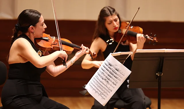 İzmir Oda Orkestrası, Nisan ayının son konseri ile sanatseverlere özel bir repertuvar sundu. Yoğun ilgi gören konser izleyenler tarafından ayakta alkışlandı. Konserde Beethoven, Antonín Dvořák gibi büyük bestecilerin eserleri seslendirildi.İZMİR (İGFA) - İzmir Büyükşehir Belediyesi İzmir Oda Orkestrası, nisan ayının son konseri ile Ahmed Adnan Saygun Sanat Merkezi'nde (AASSM) İzmirlilerin karşısına çıktı. Yaklaşık bir saat süren konserde, Ludwig van Beethoven ve Antonín Dvořák gibi klasik müziğin önde gelen bestecilerinin eserleri seslendirildi. Çok sayıda sanatseverin yoğun ilgi gösterdiği konser ayakta alkışlandı.Konser öncesinde konuşan keman sanatçısı Tuana Köprülü, orkestranın yolculuğuna dair izleyicilere bilgi verdi. Köprülü, "Karşıyaka Oda Orkestrası olarak başladığımız bu yolculukta, yaklaşık on yıldır sizlerle buluşuyoruz. Bugün İzmir Oda Orkestrası olarak yine çok değerli sanatçı arkadaşlarımızla sahnedeyiz. İlk günkü heyecanımızı koruyoruz. Sizlerin varlığı bize hem duygusal hem de sanatsal anlamda güç katıyor" ifadelerini kullandı.İki keman, bir viyola ve bir viyolonselden oluşan orkestrada; Özüm Bağtaş, Alaz Yaşıl, Bahar Oytun Duyar ve Tuana Köprülü sahne aldı. İki bölümden oluşan konser, kısa bir aranın ardından devam etti ve izleyicilerden büyük beğeni topladı.