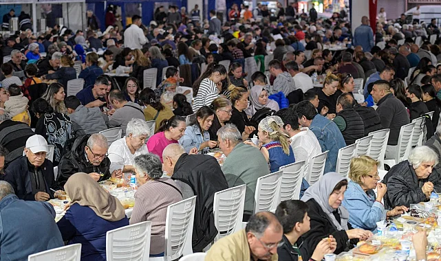 İzmir Büyükşehir Belediyesi'nin ramazan ayı boyunca 30 ilçede kurduğu iftar sofrası Gaziemir'de devam etti.İZMİR (İGFA) - İzmir'de binlerce yurttaş İzmir Büyükşehir Belediyesi'nin ramazan ayında her gün bir ilçede düzenlediği iftar sofralarında bir araya geliyor. Birlik ve beraberliğin pekiştiği bu sofralar Gaziemir ile devam etti.İzmir Büyükşehir Belediye Başkanı Dr. Cemil Tugay, Gaziemir Atıfbey Kapalı Pazaryeri'nde, Gaziemir Belediye Başkanı Ünal Işık'ın ev sahipliğinde düzenlenen iftarda yurttaşlarla birlikte oruç açtı. Duaların edildiği, çocuklara pamuk şekerinin dağıtıldığı iftarda, semazen gösterileri de yapıldı.Başkan Tugay iftarın ardından Ünal Işık ile birlikte Gaziemir Abdullah Arda Meydanı'na geçerek buradaki yurttaşlarla sohbet etti.