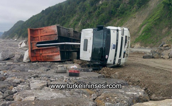 Alınan bilgiye göre, Türkeli ile Çatalzeytin ilçeleri arasında devam eden yol yapım çalışmalarını sürdüren yüklenici firmaya ait Ramazan Çetin (61) idaresindeki 41 FD 731 plakalı kamyon, Gencek köyü Çayağzı mevkisinde taş yüklü damperin boşaltılması sırasında direksiyon hakimiyetini kaybetmesi sonucu devrildi.Kazada, kamyon sürücüsü yaralanarak, Çatalzeytin Devlet Hastanesi'ne kaldırıldı. Buradaki ilk müdahalenin ardından Kastamonu Dr. Münif İslamoğlu Devlet Hastanesi'ne sevk edilen Çetin'in sağlık durumunun iyi olduğu öğrenildi.