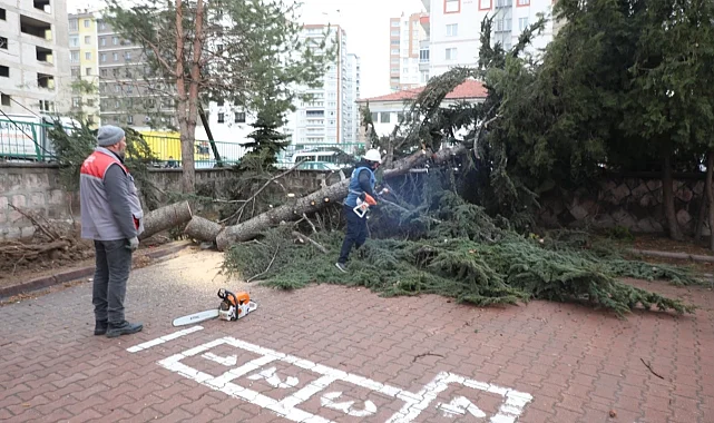 KAYSERİ (İGFA) - Vatandaşların can ve mal güvenliğini korumak adına Kayseri Melikgazi Belediyesi ekipleri sahada yerini alırken rüzgarın neden olduğu hasar kısa sürede ortadan kaldırıldı.