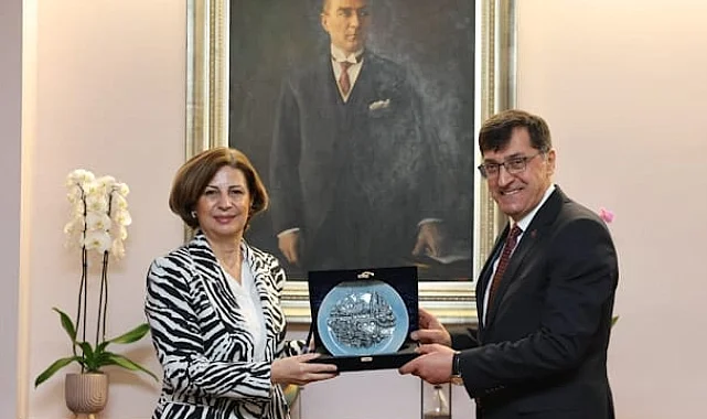 Kütahya Belediye Başkanı Eyüp Kahveci, Eskişehir Büyükşehir Belediye Başkanı Ayşe Ünlüce ve Genel Sekreter Vekili M. Recai Erdir ile bir araya gelerek, belediyecilikte iş birliği ve deneyim paylaşımını değerlendirdi.KÜTAHYA (İGFA) - Kütahya Belediye Başkanı Eyüp Kahveci, Eskişehir Büyükşehir Belediyesi'ni ziyaret ederek Belediye Başkanı Ayşe Ünlüce ve Genel Sekreter Vekili M. Recai Erdir ile görüştü. Ziyarette, iki şehir arasındaki yerel yönetim deneyimleri, belediyecilik hizmetleri ve iş birliği olanakları ele alındı.Görüşmede; şehircilik, ulaşım, çevre, kültür-sanat ve sosyal belediyecilik alanlarında yürütülen çalışmalar hakkında karşılıklı fikir alışverişinde bulunuldu. Yerel yönetimlerde sürdürülebilir ve vatandaş odaklı hizmet anlayışının önemi vurgulanırken, ortak projeler ve tecrübe paylaşımının şehirlerin gelişimine sağlayacağı katkılar değerlendirildi.Ziyaretin ardından açıklamalarda bulunan Başkan Eyüp Kahveci, Eskişehir Büyükşehir Belediye Başkanı Ayşe Ünlüce'ye ev sahipliği için teşekkür ederek, iki şehir arasında güçlenen iletişim ve iş birliğinin somut adımlarla devam edeceğine olan inancını dile getirdi. Eskişehir Büyükşehir Belediye Başkanı Ayşe Ünlüce ise ziyaretten duyduğu memnuniyeti ifade ederek, komşu şehirler arasında kurulacak güçlü iş birliklerinin hizmet kalitesini artıracağını belirtti.Ziyaret, karşılıklı iyi dileklerin paylaşılması ve hatıra fotoğrafı çekimiyle sona erdi.