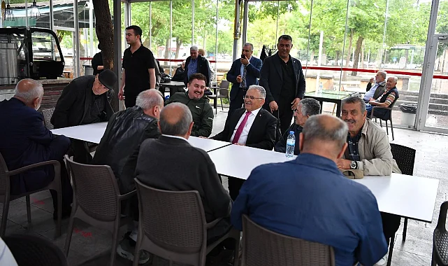 Kayseri Büyükşehir Belediye Başkanı Dr. Memduh Büyükkılıç, Büyükşehir bünyesinde hizmet veren KAYTUR A.Ş. tarafından işletilen KAYTUR Kahve'yi ziyaret ederek vatandaşlarla bir araya geldi.KAYSERİ (İGFA) - Yerel yönetim hizmetlerini bizzat sahada yürüterek tüm çalışmaları yakından takip eden Kayseri Büyükşehir Belediye Başkanı Dr. Memduh Büyükkılıç, her fırsatta Kayserililerle bir araya gelerek vatandaşların talep ve önerilerini de bizzat dinlemeye özen gösteriyor.Büyükkılıç bu çerçevede, Kayseri Büyükşehir Belediyesi bünyesinde hizmet veren KAYTUR A.Ş. tarafından işletilen KAYTUR Kahve'yi ziyaret ederek tesisi kullanan Kayserililerle buluştu.Burada sıcak ve samimi bir ilgiyle karşılanan Başkan Büyükkkılıç, vatandaşlarla çay eşliğinde sohbet ederek talep ve önerileri dinledi.Kayserililer de kente hizmetleri ve vatandaşlara güler yüzlü yakınlığından dolayı Büyükşehir Belediye Başkanı Dr. Memduh Büyükkılıç'a teşekkür ettiler.