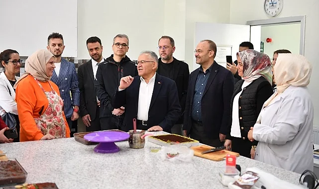 Kayseri Büyükşehir Belediye Başkanı Dr. Memduh Büyükkılıç, KAYMEK tarafından gerçekleştirilen pasta yapımı kursunda mutfağa girerek, kursiyerlere bir araya geldi.KAYSERİ (İGFA) - Kayseri Büyükşehir Belediyesi'nin mesleki eğitim ve kültür faaliyetlerini gerçekleştiren kuruluşu Kayseri Mesleki Eğitim ve Kültür A.Ş. (KAYMEK), Kayseri'nin zengin gastronomi kültürüne sahip çıkmak adına önemli etkinliklerini sürdürüyor.Bu kapsamda, Büyükşehir Belediye Başkanı Dr. Memduh Büyükkılıç, hafta içi çalışan kişilerin hafta sonu kurstan faydalanmaları için 1 günlük verilen pasta yapımı kursunda mutfağa girerek, kursiyerlere bir araya geldi.Gastronominin önemine vurgu yapan Başkan Büyükkılıç, "Eğitimin yaşı yok, eğitim her zaman her yerde önemli, gastronomi kültürü çok daha ön plana çıkmaya başladı. Yaptığımızın en iyisini yapmak, israfa fırsat vermemek adına, damak zevkimize uygun olanı üretmek önemli ve anlamlıdır" diye konuştu.Büyükkılıç, ücretsiz olarak vatandaşların hizmetine sunulan kurslarda güzel ürünlerin üretildiğini belirterek, "Sizleri tebrik ediyor, hocalarımıza teşekkür ediyorum. Burada güzel şeyler üretiliyor, görüyoruz" dedi. Tüm kursiyerlerin ramazan ayını tebrik eden Başkan Büyükkılıç, hep beraber Ramazan Bayramı'na ulaşmayı temenni etti.