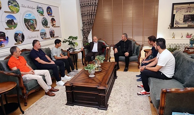 Kayseri Talas Belediyespor altyapısından yetişerek Süper Lig ekiplerinden Trabzonspor'a transfer olan genç yetenek Mustafa Çiğdem, Talas Belediye Başkanı ve Talas Belediyespor Onursal Başkanı Mustafa Yalçın'ı makamında ziyaret etti.