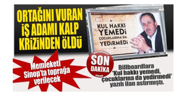Eski ortağını cami avlusunda yaralayarak kaçan iş adamı Şevki Demirel, olaydan bir süre sonra billboardlara 'Kul hakkı yemedi, çocuklarına da yedirmedi' yazılı ilan astırmıştı. Haber -İHA