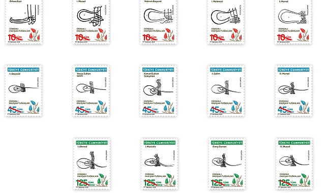 PTT AŞ tarafından "Osmanlı Padişah Tuğraları" konulu resmi posta pulları 3 Mart 2026 tarihinde tedavüle sunuldu.ANKARA (İGFA) - PTT AŞ, 3 Mart 2026 tarihinde "Osmanlı Padişah Tuğraları" konulu (26x36 mm boyutunda) 6 x 10 TL, 6 x 45 TL, 4 x 125 TL, 4 x 265 TL bedelli resmî posta pullarını PTT iş yerlerinde ve PTT AŞ'ye ait www.filateli.gov.tr web adresinde satışa sundu.