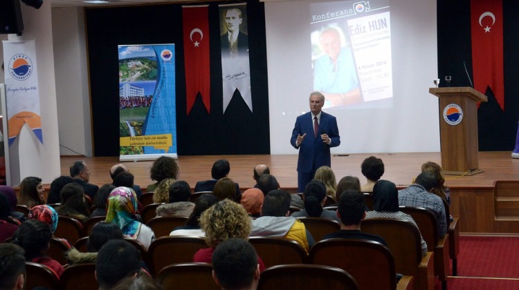 Sinema sanatçısı Ediz Hun, Türkiye'nin geleceği için gençlere çağrıda bulunarak "Bir takım farklı düşünceleriniz olabilir, sağ görüşlü, sol görüşlü olabilirsiniz ama ne olur gelin birlik olun, bu memleketin sizlere ihtiyacı var." dedi.Hun, Sinop Üniversitesi'nde katıldığı Sosyo-Ekonomik Kalkınmada Doğa İnsan İlişkileri konulu söyleşide yaptığı konuşmada, dünyadaki en doğru yolun, sevgi yolu olduğunu vurguladı.Sevginin yaşamın anlamı olduğuna işaret eden Hun, sevgi yerine, kin ve nefret yolunu seçenlerin her zaman kaybetmeye mahkum olduklarını dile getirdi.Hun, ölümlü dünyada insanların birbirlerine karşı kin ve nefret beslemelerinin çok anlamsız bir yaklaşım tarzı olduğunu belirterek, "Mesela benim baba tarafım Çerkez. Ama 'yaşasın Çerkezler' falan demem yani. Benim için Kürt'ü, Makedon'u Laz'ı bilmem ne varsa yani Türkiye'nin mozaiği içerisindeki bütün insanlar benim kardeşimdir. Irkçılığı hiçbir zaman sevmem, ırkçı bir adam değilim. Irkçılara da sert çıkarım" ifadesini kullandı.Ülkenin en büyük umudunun gençler olduğuna işaret eden Hun, şöyle konuştu:"Bir takım farklı düşünceleriniz olabilir, sağ görüşlü, sol görüşlü olabilirsiniz ama ne olur gelin birlik olun, bu memleketin sizlere ihtiyacı var. Sizler için üniversitelerde hocalarınız var. İnanın sizin kadar bizler de ders çalışıyoruz. Gelin şu işi kardeş kılalım, kolay kılalım. Çünkü dünya kimseye kalmaz. 'Sevelim, sevilelim' demiş adam. Benim size tavsiyem sağlıklı ve dikkatli bir yaşam sürdürmeniz. Birbirinize sevgiyle yaklaşın. Bilim de sevgiyle yoğrulmalı. Zaten dinlerin esasında sevgi var. Sanatta da bir sevgi görüyorsunuz. O zaman demek ki her şeyin altında yatan gerçek sevgi. Sevgi inanın en doğru yoldur ve sevgi yolunu tercih eden her zaman kazanır."Hun, söyleşinin sonunda öğrencilerin sorularını yanıtladı.Haber7.com