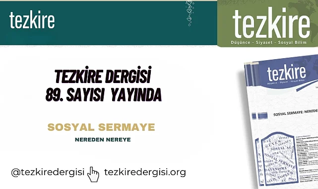 Her biri alanında uzman ve saygın bilim insanlarının araştırma, inceleme, eleştiri ve benzeri özgün yazılarının yer aldığı Tezkire Dergisinin 89.Sayısı "Sosyal Sermaye: Nereden Nereye?" temasıyla okurlarıyla buluşuyor...Genel Yayın Yönetmenliğini Yunus BADEM'in yaptığı, Yayın Kurulu Prof.Dr. Yasin AKTAY, Dr. M. Veysel KARATAŞ, Dr. Murat GÜZEL, Doç.Dr. Hicret K. TOPRAK ve Fatih AKYÜZ gibi isimlerden oluşan Tezkire Dergisi, "Sosyal Sermaye: Nereden Nereye?" başlıklı 89.Sayısında;Birbirinden özgün makaleler, araştırma yazıları ve söyleşiyle okurlara; siyaseten ekonomiye, kamusal hayattan kültüre kadar 'Sosyal Sermaye'nin tarih içerisindeki evrimini anlama imkanı veriyor...Yarım asra yaklaşan yayın hayatıyla Türkiye'nin entelektüel hafızasında çok önemli bir yere sahip olan Tezkire'nin 89. Sayısı'yla zengin bir fikir ve düşünce yolculuğuna çıkmak için www.tezkiredergisi.org'u ziyaret edebilir, derginin yeni sayısını online kitap satış mağazalarından ve ilinizdeki kitapevleri aracılığıyla edinebilirsiniz....