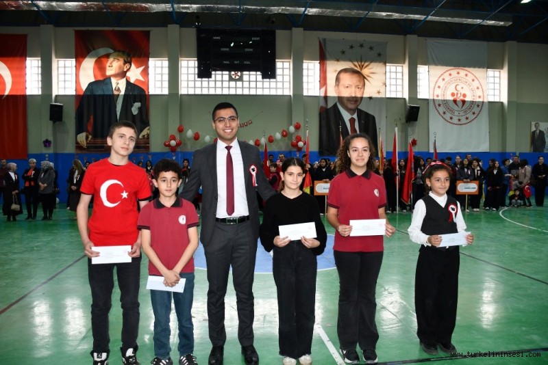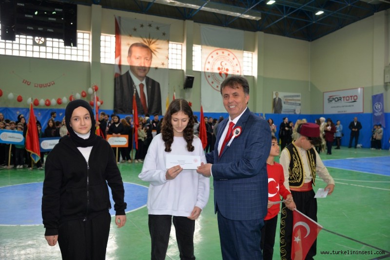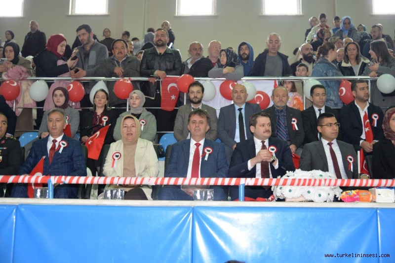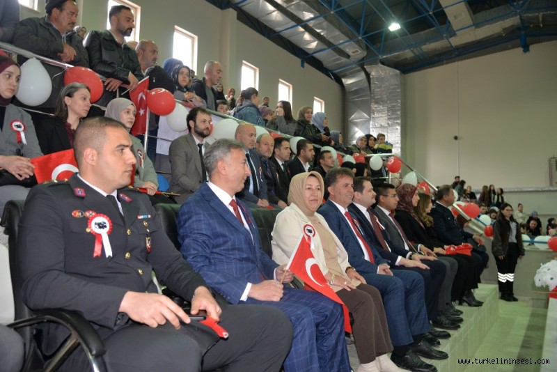 Türkeli’de, 23 Nisan Ulusal Egemenlik ve Çocuk Bayramı dolayısıyla düzenlenen kutlama programı, İlçe Spor Salonu’nda yoğun katılım ve büyük bir coşku ile gerçekleştirildi.Programa, Sinop Vali Yardımcısı Ali Osman Bulat, Türkeli Belediye Başkanı Veysel Şahin ve eşi Nevin Şahin, Türkeli Cumhuriyet Savcısı Celal Asal, İlçe Milli Eğitim Müdürü Recep Anar, daire amirleri, siyasi parti temsilcileri ve çok sayıda vatandaş katıldı.Etkinlikler kapsamında öğrenciler tarafından sahnelenen oratoryo ve çeşitli gösteriler izleyicilerden büyük beğeni toplarken, salonda bayram coşkusu doruğa ulaştı.Program sonunda protokol üyeleri tarafından düzenlenen yarışmalarda dereceye giren öğrencilere ödülleri takdim edildi. Öğrencilerin mutluluğu yüzlerinden okunurken, katılımcılar bayramın anlam ve önemine yakışır bir gün yaşadı.