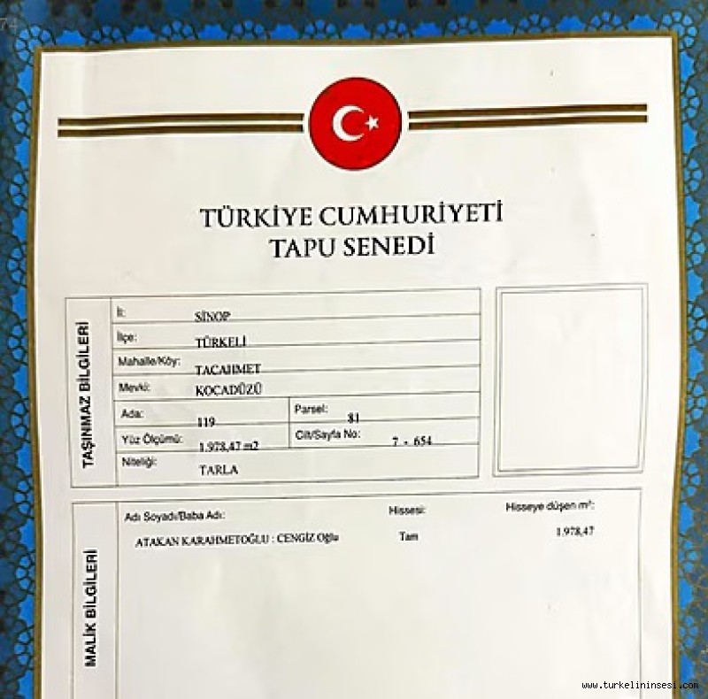 Türkeli’nin Taçahmet Köyü Kocadüzü Mevkiinde, Türkeli–Ayancık karayolu üzerinde bulunan 1.978 m² büyüklüğündeki fındık bahçesi sahibinden satılıktır.