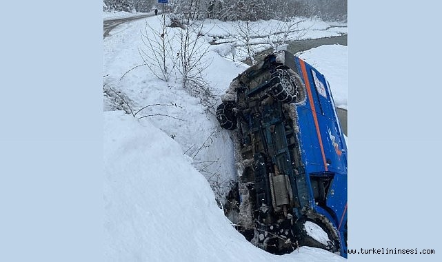 Türkeli'nin Ayaz köyü mevkiinde, kar ve buzlanma nedeniyle kargo minibüsü yoldan çıkarak dereye uçtu.