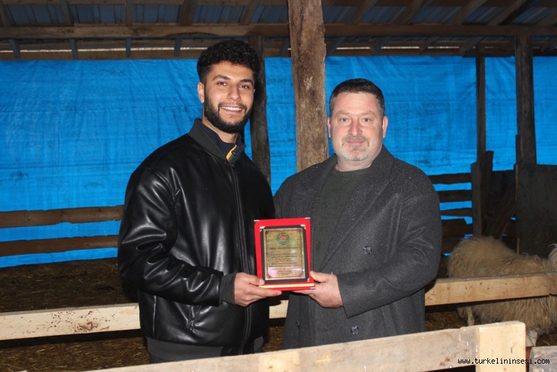 Türkeli’de devlet kredi desteklerinden faydalanarak 250 koyun kapasiteli küçükbaş hayvan yetiştiriciliği tesisi kuran Mehmet Özcan ve Bilal Epsamlı’ya, Türkeli Ziraat Odası öncülüğünde başarı plaketi verildi.