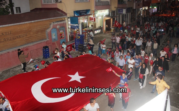 Türkeli Kaymakamlığı tarafından düzenlenen Demokrasi Yürüyüşü'ne yüzlerce vatandaş katıldı.Kaymakamlık organizesiyle düzenlenen Demokrasi Yürüyüşü öncesi ilçedeki Merkezi Camisi’nde akşam namazına müteakip şehitler için Mevlid-i Şerif okundu. Mevlid-i Şerif'in ardından dualar edildi.Belediye Meydanı'nda devam eden programda, İlçe Kaymakamı Semih Altaş, siyasi parti temsilcileri ve daire amirlerinin öncülüğünde darbe girişimini protesto etti.Kaymakam Semih Altaş, konuşmasında, 15 Temmuz’dan bu yana ilçe halkının meydanları boş bırakmadığını belirterek, “Devletiniz, milletiniz, canınız pahasına bu meydanları boş bırakmadınız. Sizdeki cesaret, dik duruş bizlere de yansıyor. Bizler de işimize dört elle sarıldık. Bizim devletimizin, bizim milletimizin kalbinde, kanında öyle bir isyan var ki, fikri, düşüncesi ne olursa olsun, vatan söz konusu olduğunda birleşerek meydanlara dökülebiliyoruz. Burada, şuanda hepimiz farklı düşüncede, farklı fikirde, farklı hissiyatlarda olabiliriz ancak, şuan tek ortak noktamız var o da vatandır. Bu vatanı korumak hepimizin boynunun borcudur. Bu vatana, bu millete, şerefsizce, kahbece, onursuzca saldıran şerefsizlere en iyi ders, yine milletimiz canıyla, malıyla, kanıyla vermiştir.” dedi. Konuşmanın ardından katılanlarla birlikte hep bir ağızdan İstiklal Marşı okundu. Daha sonra protokol üyeleri ve vatandaşlar ellerinde Türk bayraklarıyla şehir turu atarak darbe girişimini protesto etti.