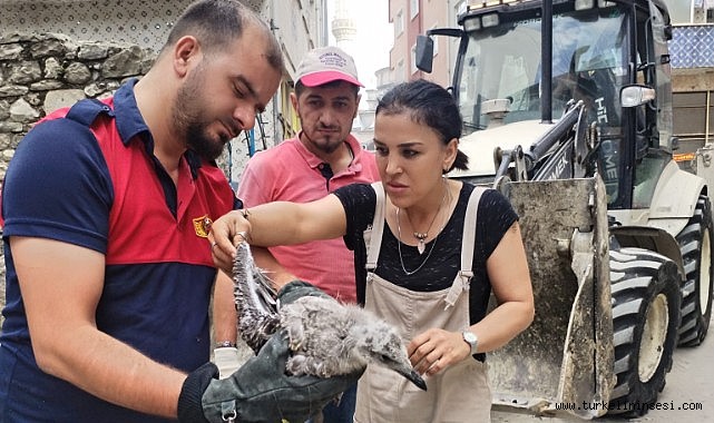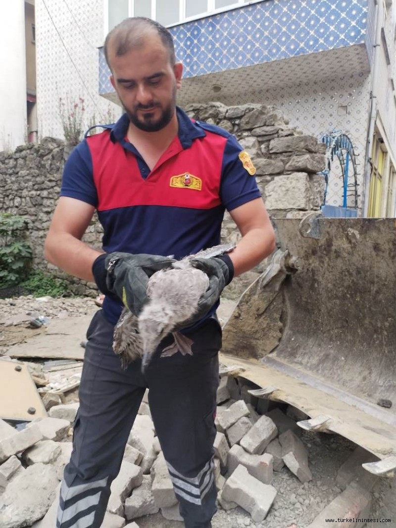 İlçenin Güzelyurt Mahallesi'nde atıl durumdaki bir binanın çatısında bulunan martının mahsur kaldığı ihbarını alan Türkeli Belediyesi İtfaiye Amirliği ekipleri harekete geçti.Ekipler, iş makinesi marifetiyle yaptıkları çalışma sonucunda martıyı bulunduğu yerden kurtardı. Kanatlarından yara aldığı tespit edilen martı, belediye bünyesindeki veteriner hekime teslim edildi.